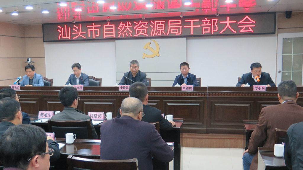 1月8日下午,省自然资源厅、市委组织部在汕头市自然资源局召开干部大会。宣布新组建的市自然资源局领导班子任命决定,林锐武同志任市自然资源局党组书记、局长。