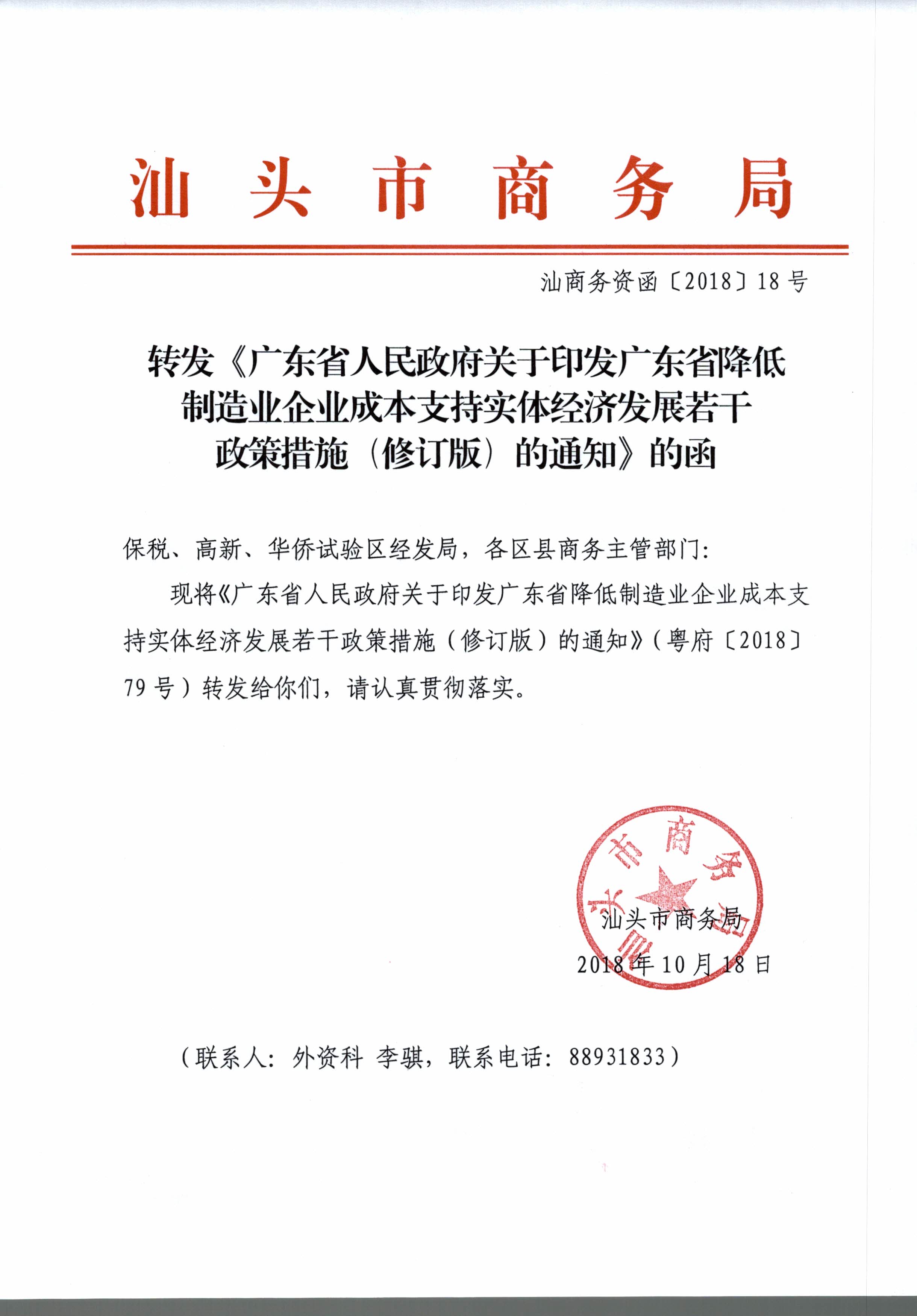 广东省人民政府关于印发广东省降低制造业企业成本支持实体经济发展若干政策措施(修订版)的通知