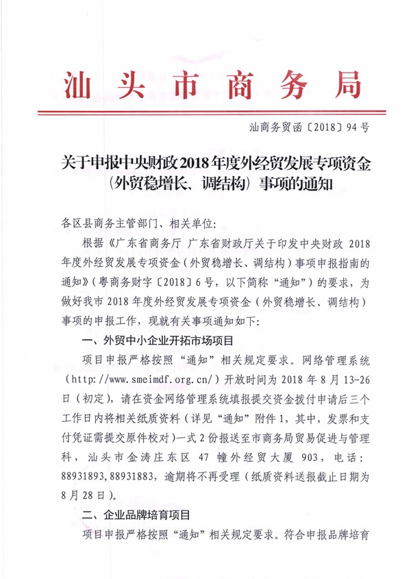 关于印发中央财政2018年度外经贸发展专项资金(外贸稳增长、调结构)事项申报指南的通知.pdf